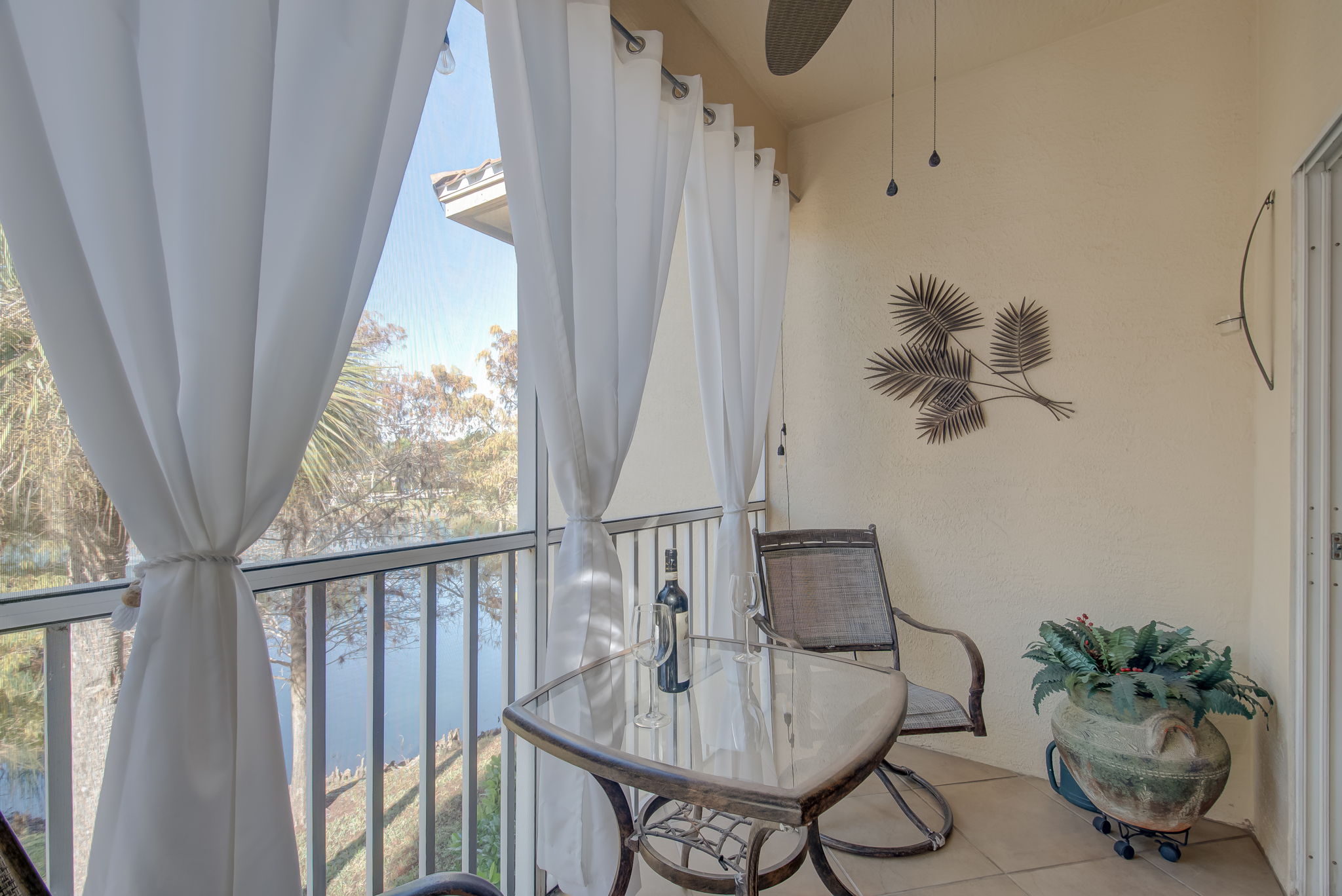 Welcome to your slice of paradise in beautiful Fort Myers, Florida! This bright and airy second-floor end-unit condo overlooking the water is located in the highly desirable, gated Bellamar at Beachwalk community and offers the perfect blend of comfort, style, and resort-style living. This residence features 3 bedrooms and 2 baths in a split floor plan, providing excellent privacy. Volume ceilings enhance the open-concept layout, while wood flooring in the bedrooms adds warmth, complemented by uniform tile throughout the main living areas for easy maintenance and a cohesive look. The open kitchen features stainless steel appliances, granite countertops, a breakfast bar, and seamless flow into the living and dining spaces—ideal for entertaining or everyday living. Plantation shutters adorn all windows and the lanai slider, adding timeless elegance throughout. The spacious primary suite boasts a custom walk-in shower and a custom wall-unit closet, while both bathrooms are finished with marble countertops. This condo features a screened-in lanai overlooking the lake, offering one of the best views in the community with a serene, unobstructed water view that provides exceptional privacy and a peaceful setting—perfect for enjoying your morning coffee or taking in beautiful sunset views at the end of the day. Bellamar at Beachwalk is known for its lush tropical landscaping and low monthly fees, and residents enjoy a lakeside resort-style pool and spa, fitness center, and the peace of mind of a recently completed new roof. Investor- and seasonal-buyer friendly, the community allows up to 12 rentals per year with a 30-day minimum, making this an excellent opportunity for income potential or flexible seasonal use. Just minutes from Fort Myers Beach, Sanibel Island, shopping, dining, and entertainment, this condo is ideal as a full-time residence, winter retreat, or investment property. A must-see opportunity to enjoy the Southwest Florida lifestyle at its finest.